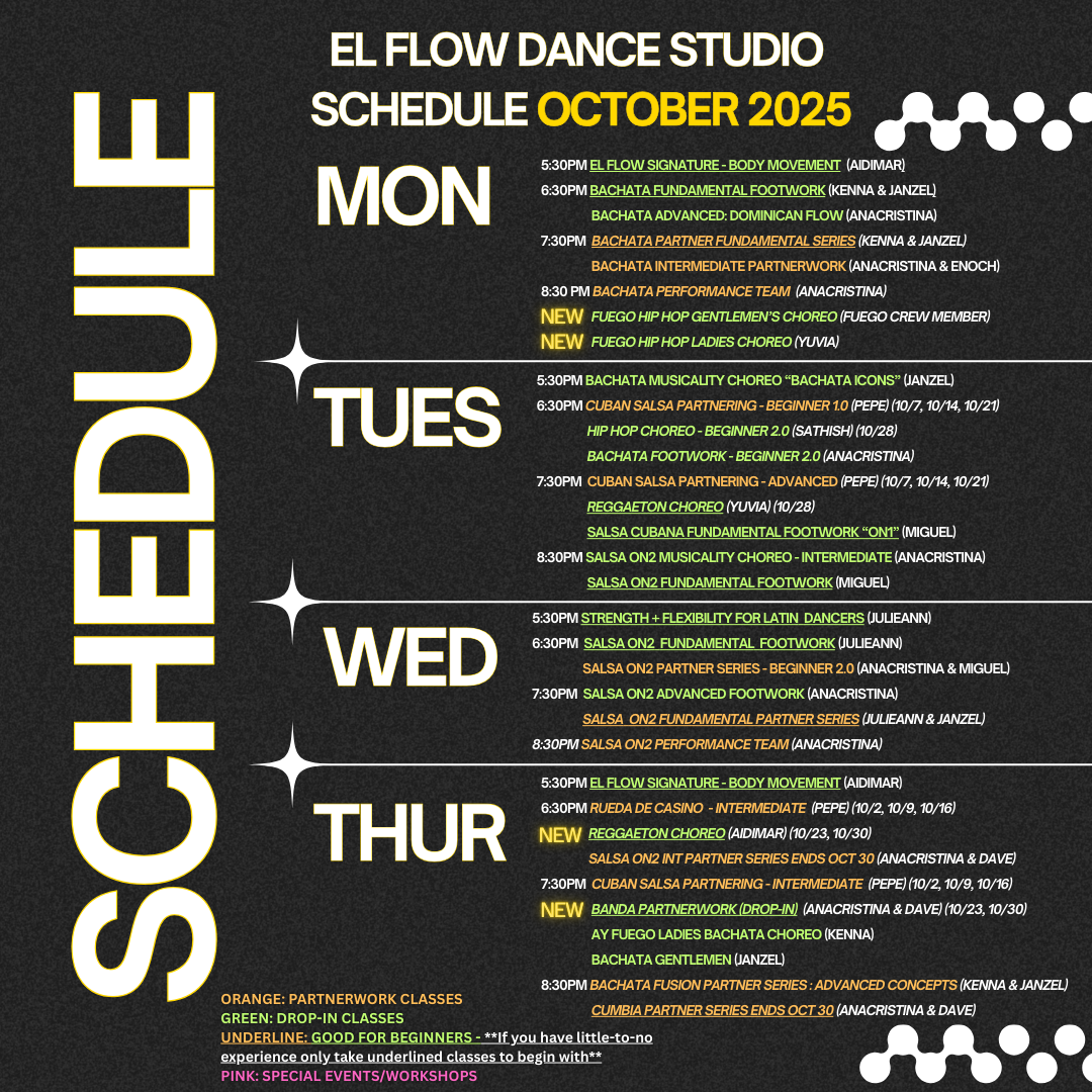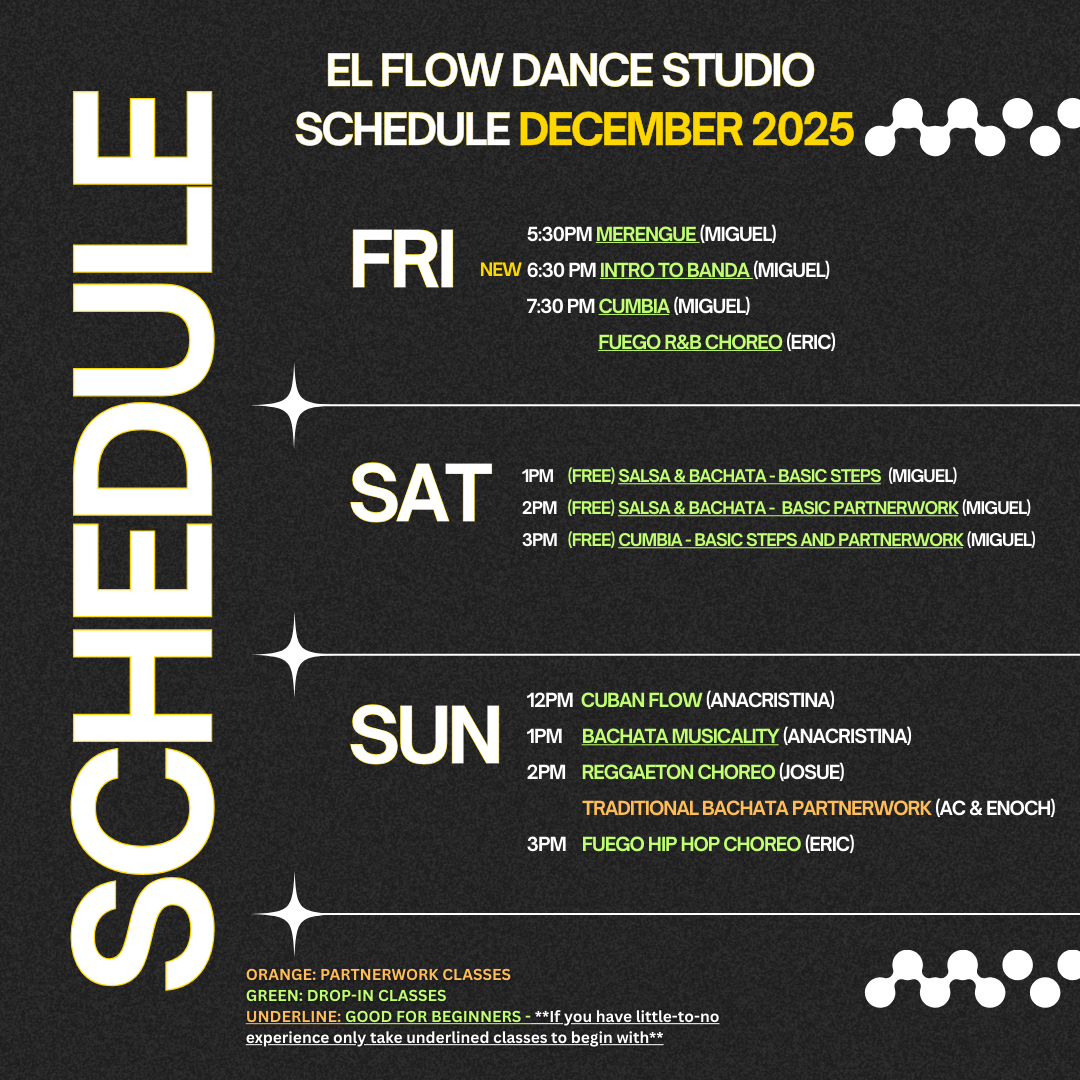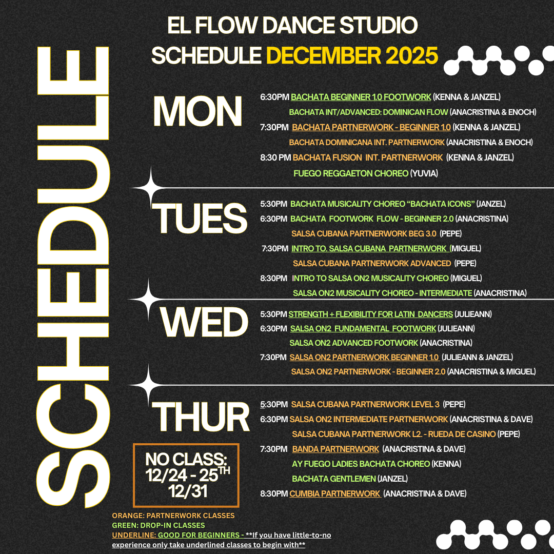 Whether you’re a complete beginner or a seasoned dancer, El Flow is the place to train, grow, and connect. We offer a range of weekly classes, social events, and performance opportunities—including the chance to join one of our dance teams.